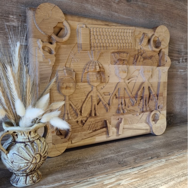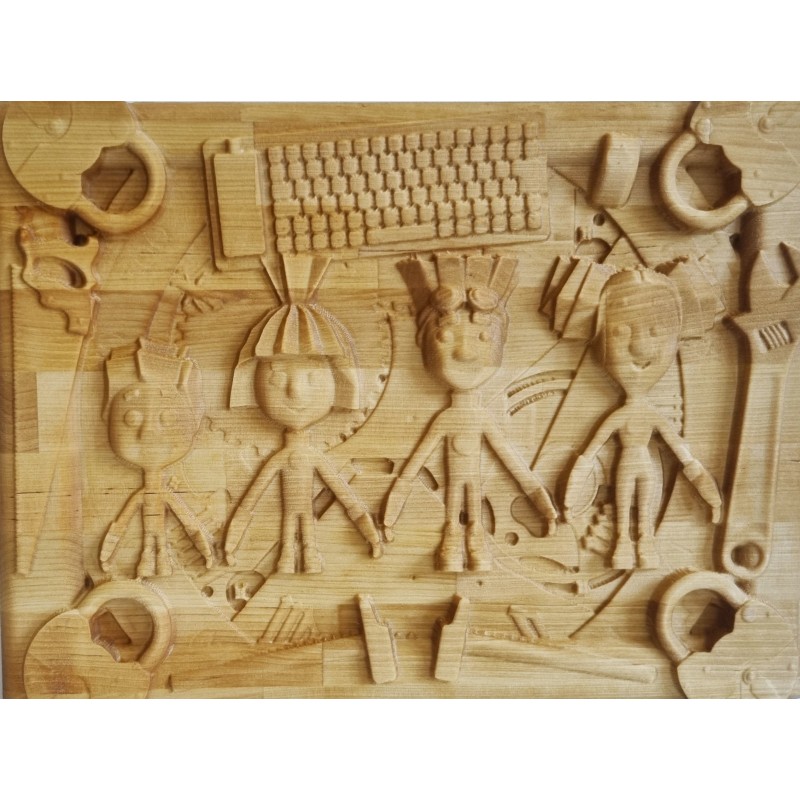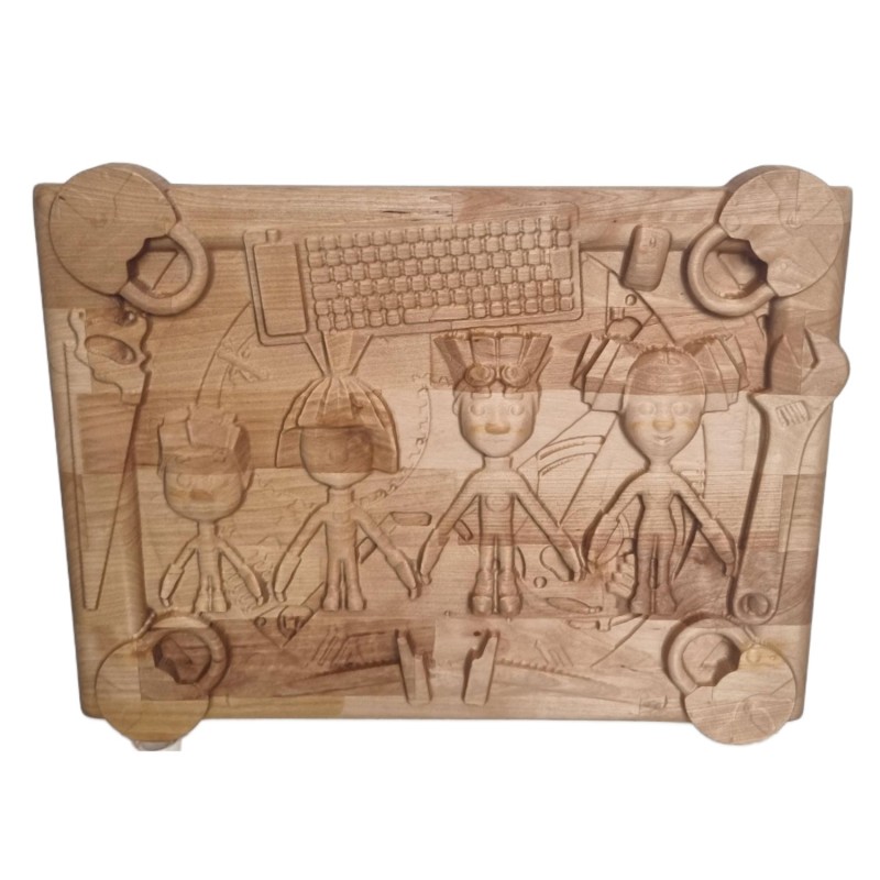 Raižytas medinis pano "Fiksikai"  Raižytas medinis pano "Fiksikai"
